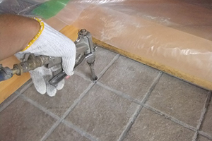 和室、リビングに蟻道、食害を確認。被害箇所への穿孔後、薬剤注入処理後、薬剤散布処理を実施。 滋賀県大津市A様宅の施工詳細